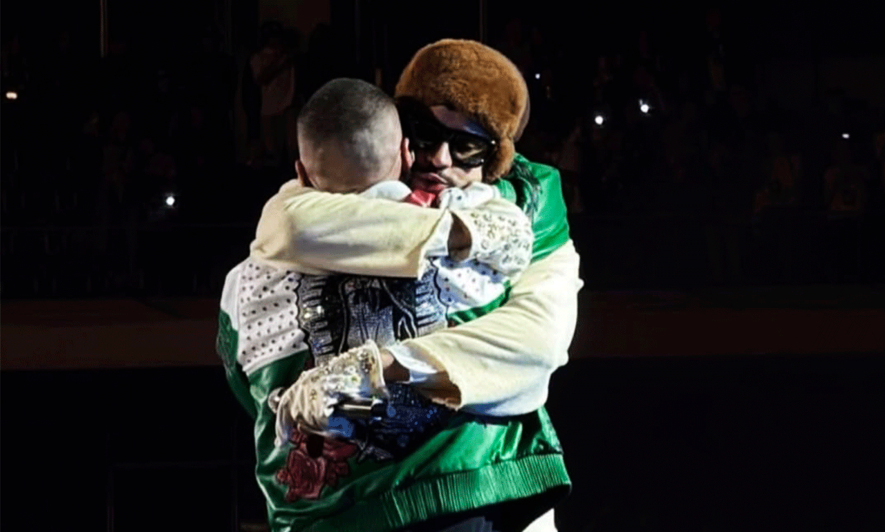 Durante el último concierto de Bad Bunny en el Estadio GNP Seguros, el ícono colombiano J Balvin apareció de sorpresa para interpretar juntos varios de sus éxitos, entre ellos clásicos como “La Canción” y “Qué Pretendes”, canciones que marcaron una era dentro del movimiento urbano y el reggaetón latino. La multitud se rindió ante la energía y emoción de ver a estas dos figuras históricas unidos nuevamente sobre las tablas.